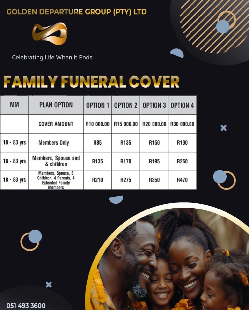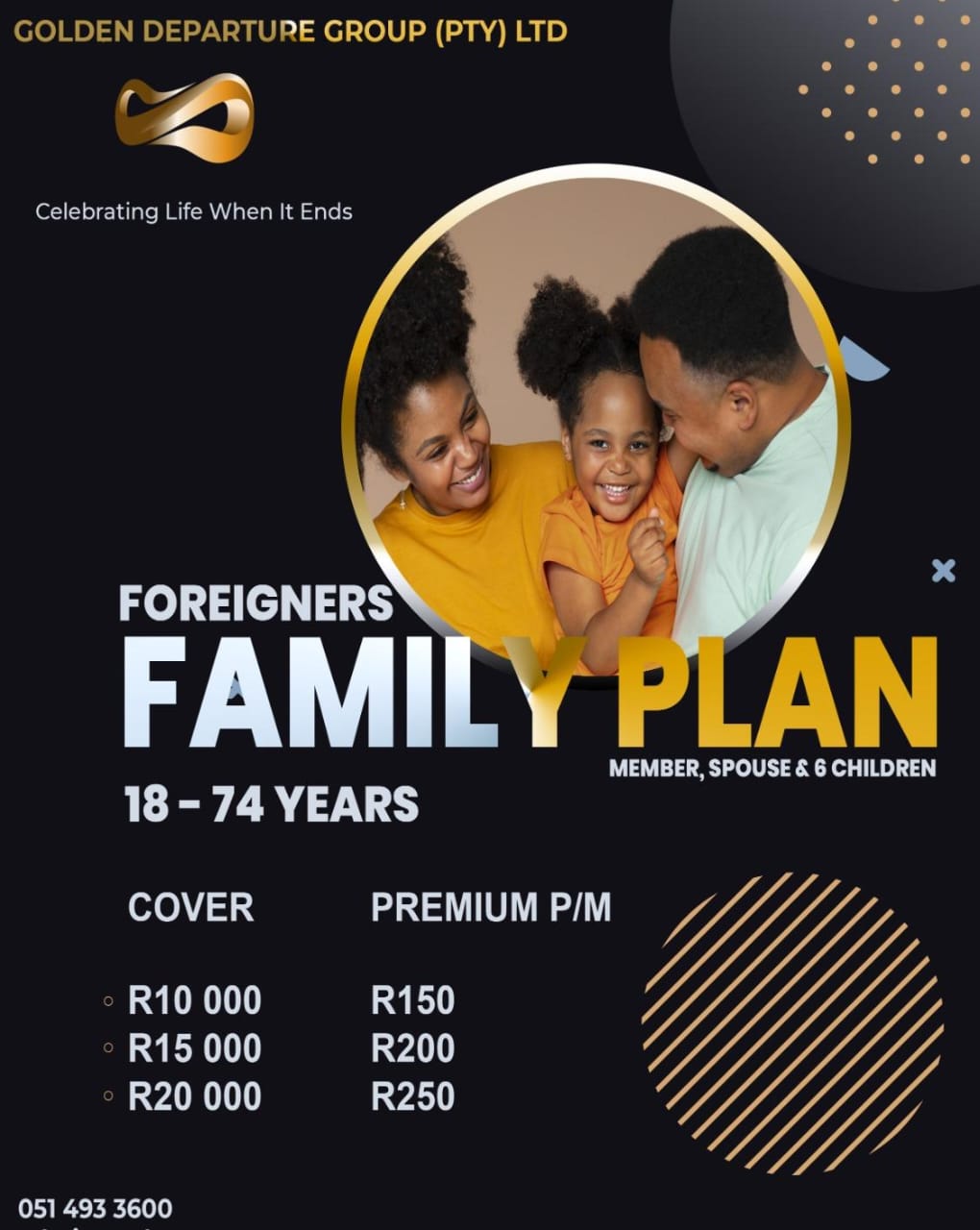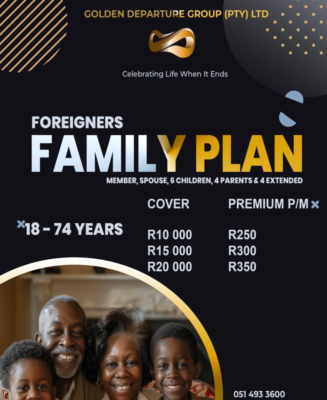 Our founder of Golden DepartureGroup, Mr Setjhaba Mafenya noticed a shift in the way people see and view the insurance industry, he wanted to make a difference, he wanted an insurance that will accomodate and accept all ages. That is how the company was born.